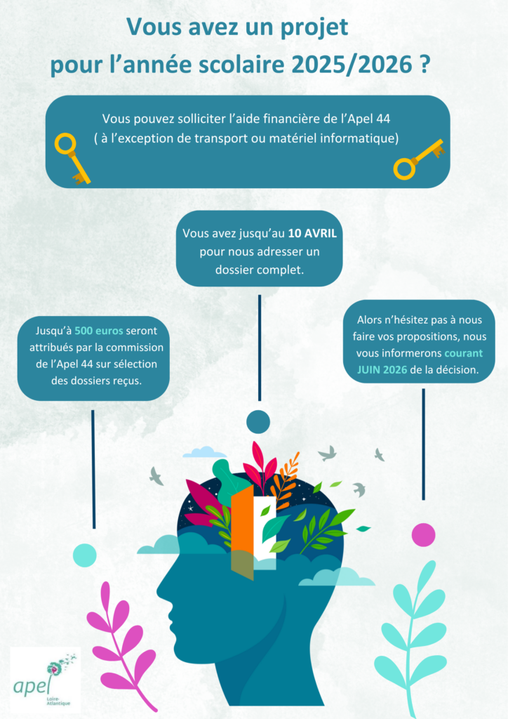 L’aide à projet est proposée à toutes les Apel d’établissements et consiste en une aide financière de l’Apel départementale de Loire-Atlantique.